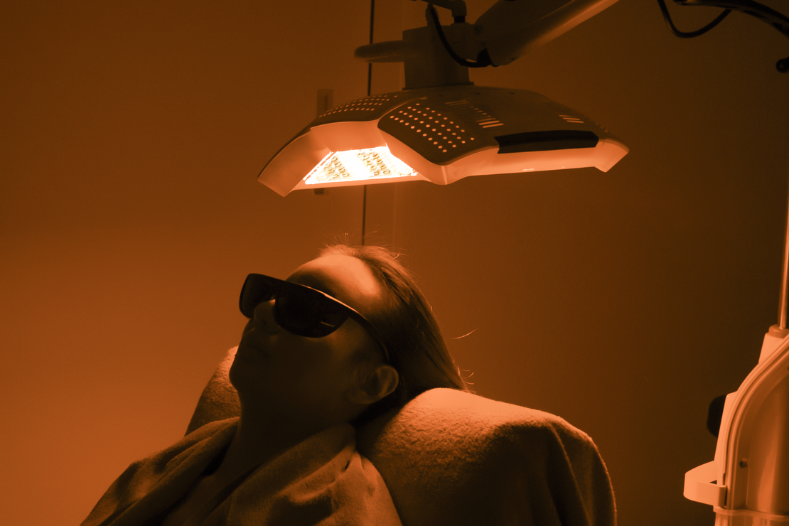 يبدأ العلاج بجلسة علاج ضوئي منخفضة التردد لمدة عشر دقائق، حيث يتم تسليط ضوء بألوان مختلفة مباشرة على الشعر وفروة الرأس. يحفز هذا العلاج الدورة الدموية، مما يحسن وصول الأكسجين والمغذيات الأساسية إلى بصيلات الشعر. كما يحفز العمليات الأيضية داخل بصيلات الشعر، مما يؤدي إلى شعر أقوى، ويعزز نمو شعر جديد، ويقلل من تساقط الشعر.
