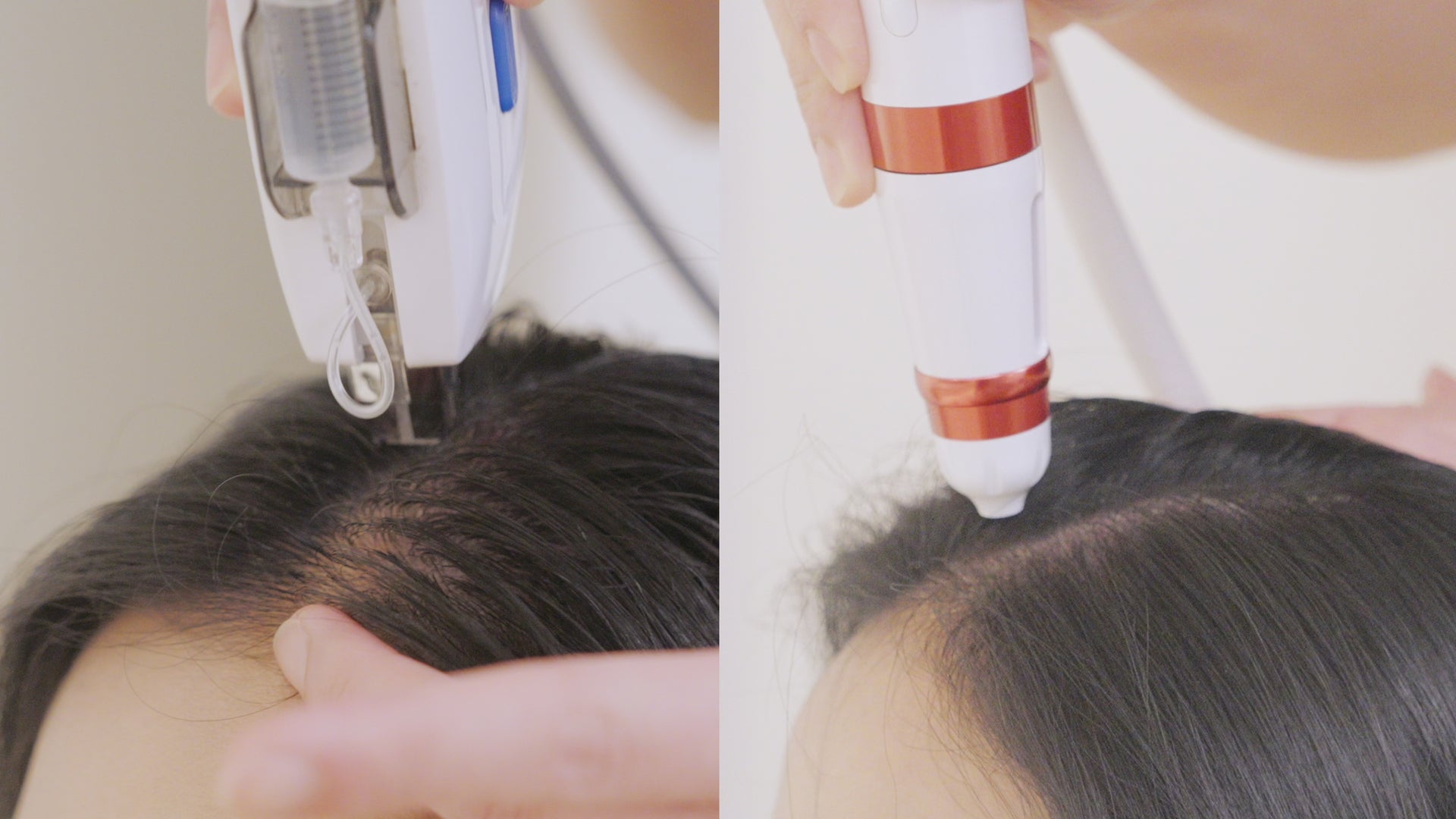 باستخدام جهاز نفاث طبي، يُرش الأكسجين النقي بضغط فائق على مصل مُصمم خصيصًا لكل نوع من أنواع فروة الرأس. تسمح القطرات متناهية الصغر (جزء من تريليون من الغرام) بتغلغل المكونات المغذية بعمق في البشرة.