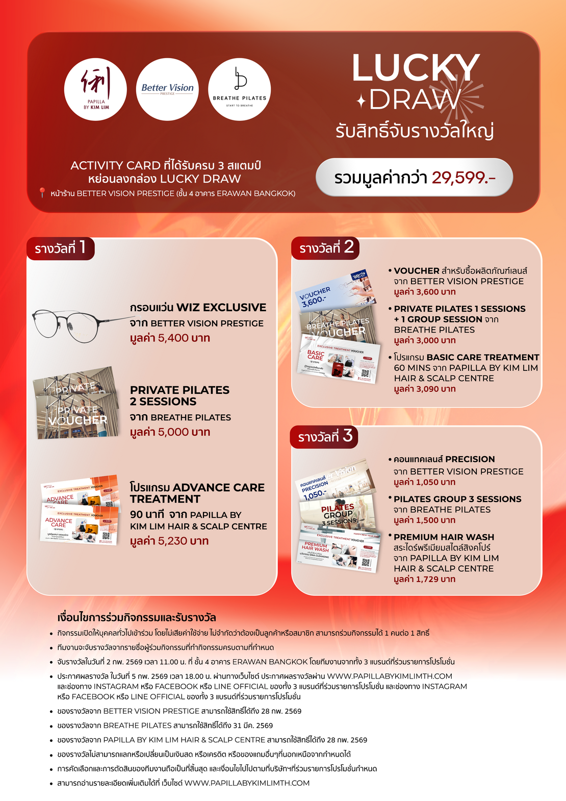 *จับรางวัลในวันที่ 2 กพ. 2569 เวลา 11.00 น. ที่ ชั้น 4 อาคาร Erawan Bangkok โดยทีมงานจากทั้ง 3 แบรนด์ที่ร่วมรายการโปรโมชั่น