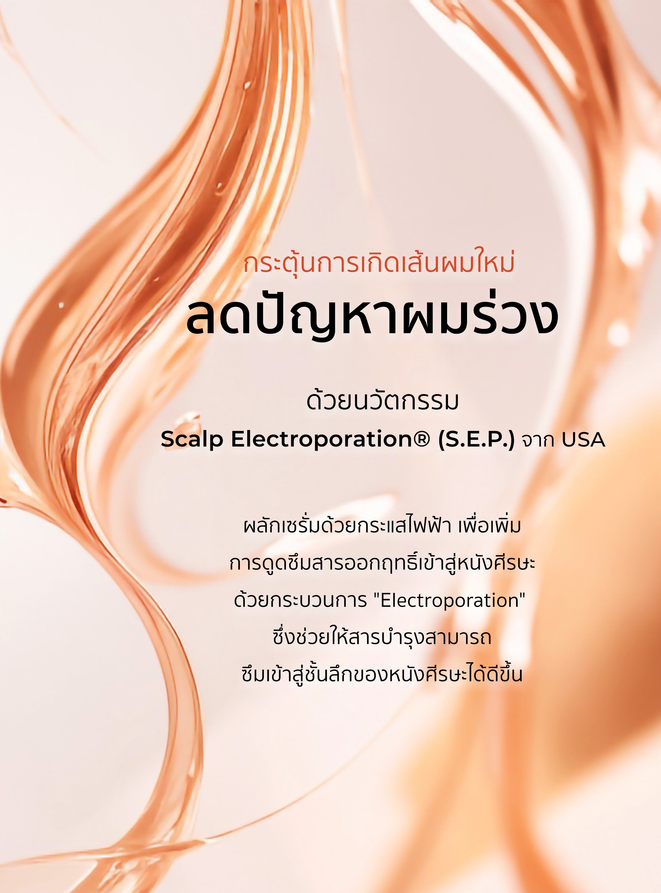 Option B) S.E.P Scalp Electroporation® FDA-approved Scalp Electroporation® technology enables up to 17 times greater serum absorption. Temporary electrical currents open hair follicles to deliver specially formulated treatment serum enriched with carefully selected plant stem cells. Helps heal inflamed skin and reduce free radical imbalances that cause hair loss.