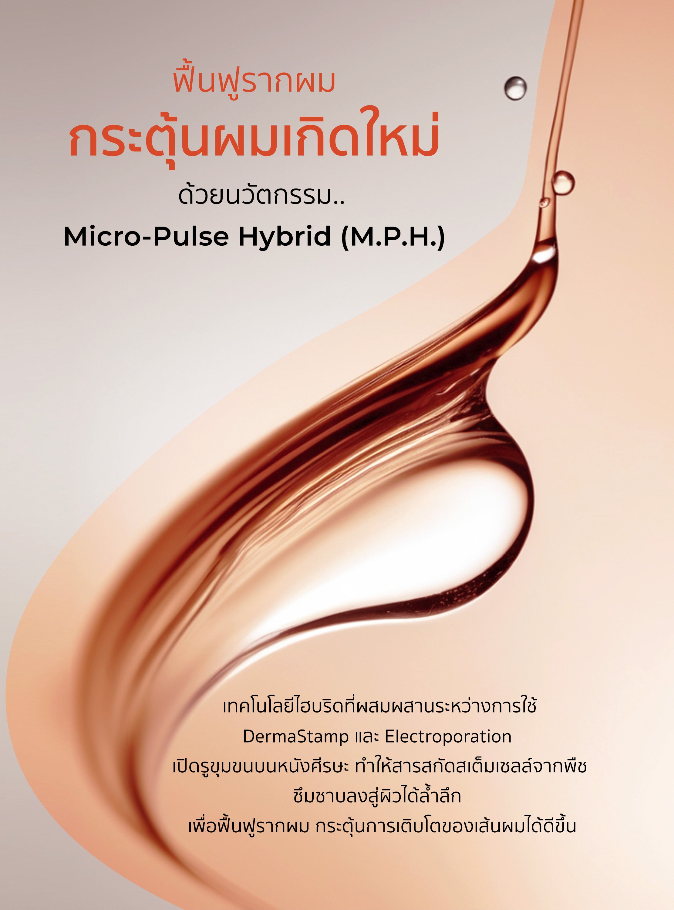 Option A) MPH (Micro-Pulse Hybrid) Utilises Microcrystals to exfoliate the scalp, creating micro-channels for enhanced absorption of molecular-sized nutrients. Electric currents stimulate cell membrane opening for deeper penetration of treatment ingredients at the cellular level, without damaging outer tissue layers. Pain-free treatment with no recovery time required.