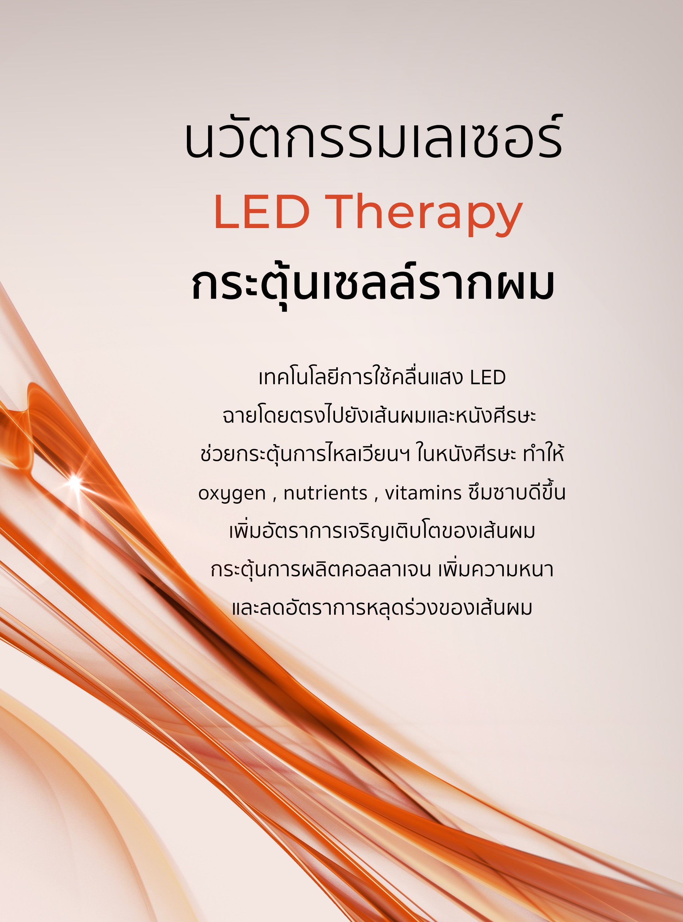 - LED Therapy - Scalp rejuvenation using LED Light, applying LUX LLLT deep into skin layers to stimulate new hair cell production whilst rejuvenating and nourishing scalp health