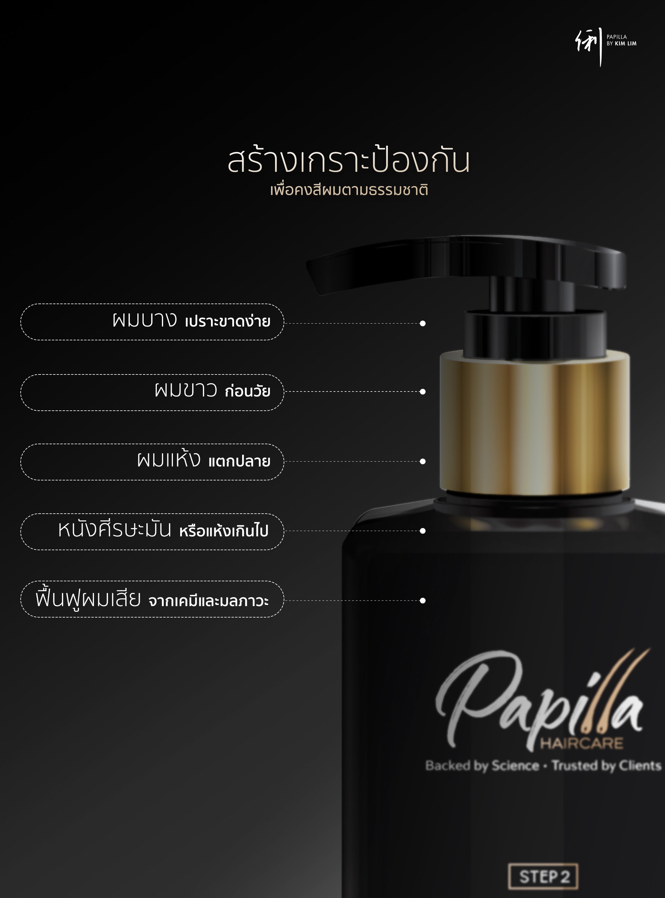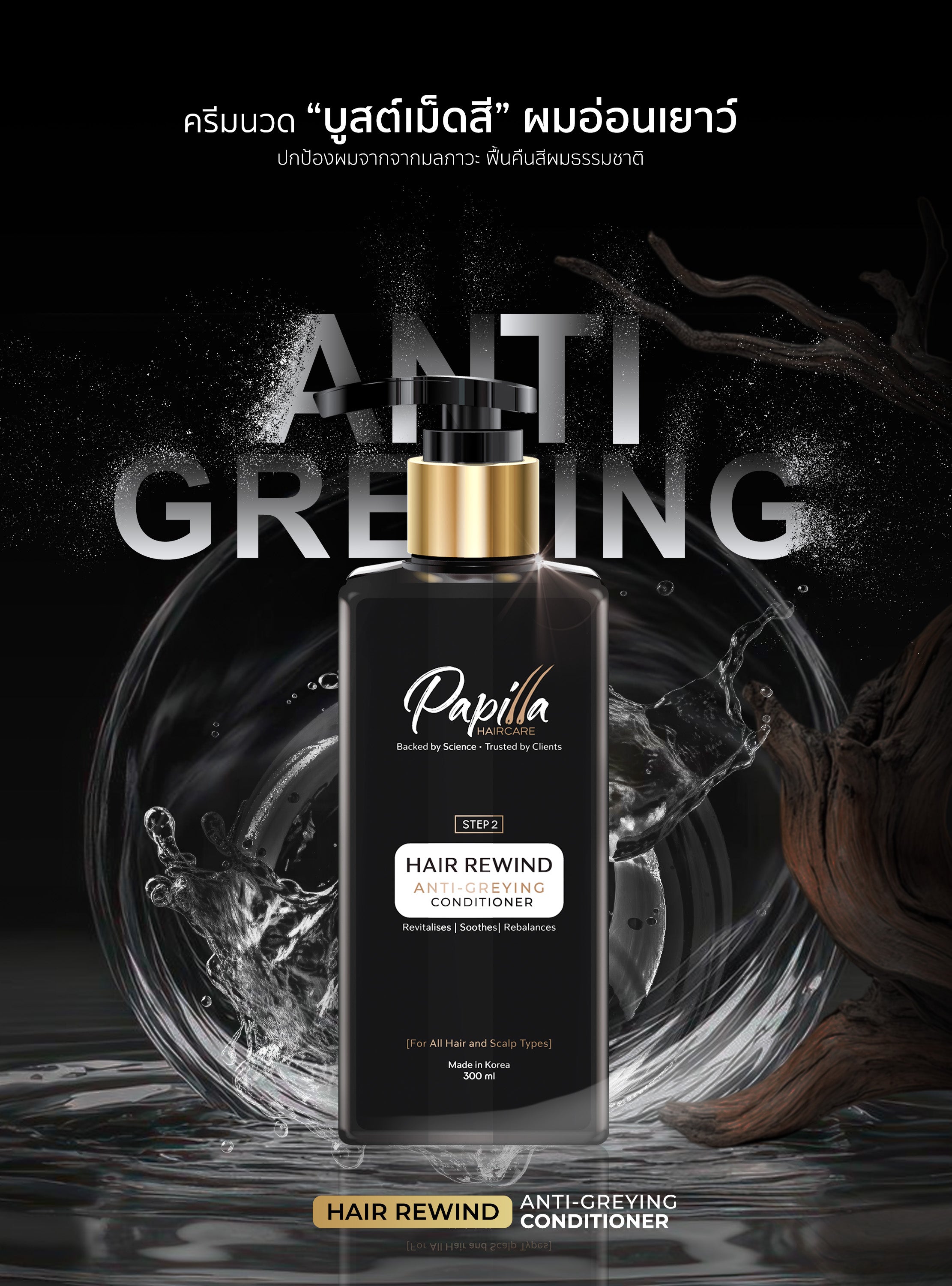 PAPILLA's Anti-Gray Hair Conditioner helps revive hair and makes hair soft, smooth and healthy by balancing natural oils to control oil and moisture levels on the scalp. It is an ideal choice for those who have grey hair problems. Enriched with quality ingredients such as Encapsulated Marine Algae SOD Antioxidant Complex, Fulvic Acid, He Shou Wu Callus Extract, Etc.