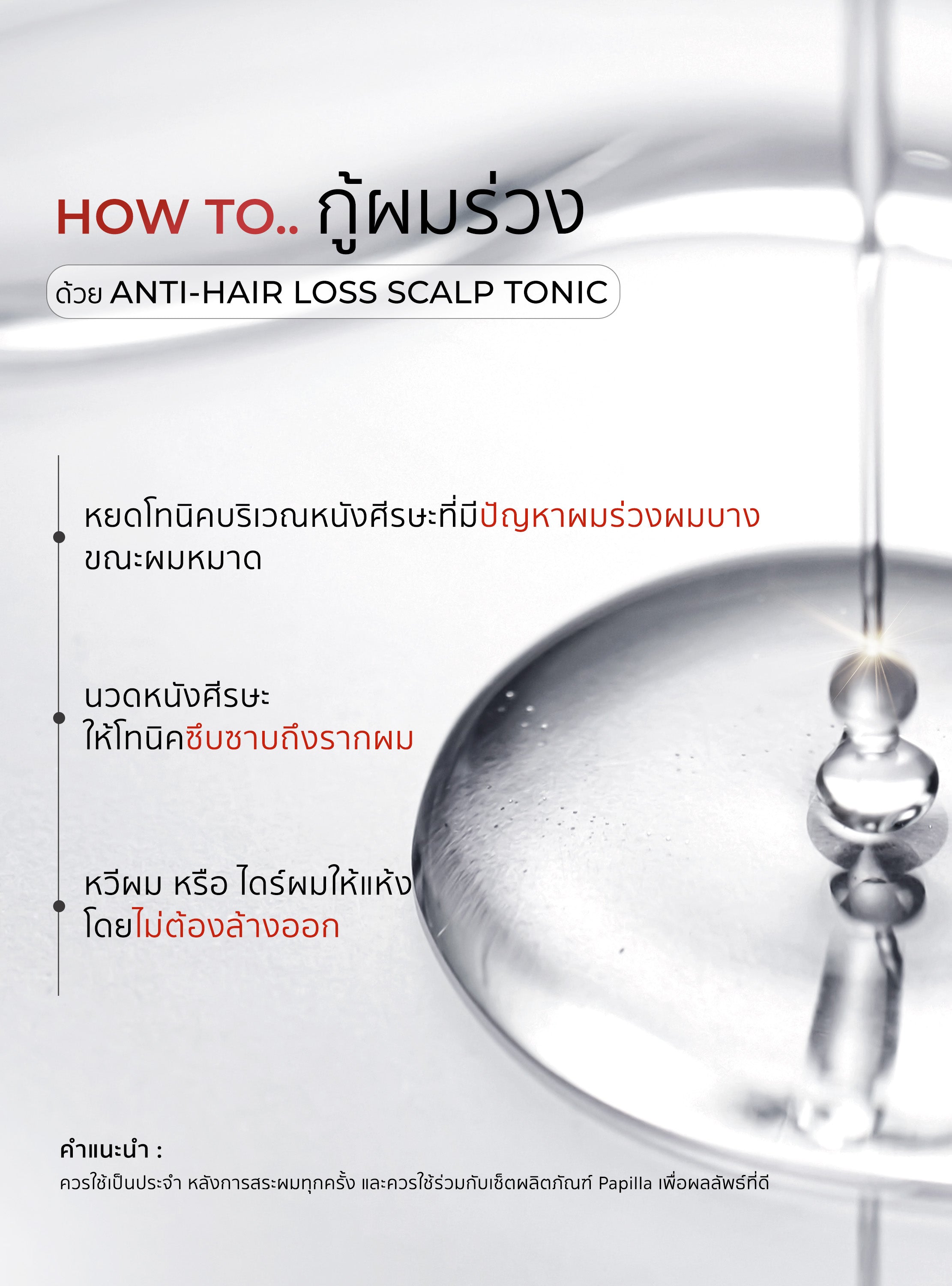 - Tonic stimulates the creation of new, strong hair from the roots. Packed with vitamins to revitalize the scalp.